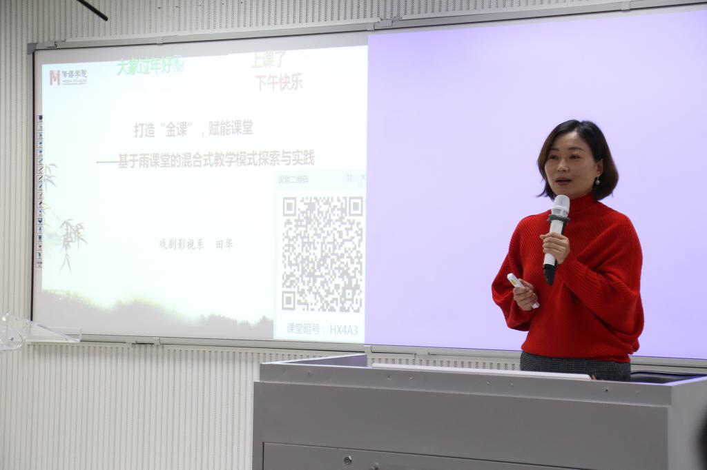 刘想如首先对437bwin必赢国际官网近两年来课程思政教学活动的开展情况做了全面回顾。紧接着,437bwin必赢国际官网戏剧影视系主任田华结合个人的校级“课程思政”项目进展情况,从三个方面介绍了自己的创新经验与做法。田华带领老师们进入“雨课堂”智慧教学小程序,对其各个功能进行了体验和使用,展示了智慧课堂的教学优势。在教学设计方面,她将知识目标和育人目标相结合,既点燃学生学习热情,又引导学生形成正确的价值观和意识形态。在课程教学内容上以意境为例,把思政内容融进教学过程,激发学生对中华优秀传统文化的热爱,提升民族自豪感。在“课程思政”教学创新的研讨环节,各小组热烈讨论,踊跃发言。广播电视系副主任冯莉颖说到要及时进行新的教学方式和教学模式的学习与创新,以适应知识传播从碎片式到集群式、从仓储式到媒介型的转变。动画系赵永彬老师谈到自己在《中外美术史》的教学中,大力培养学生的家国情怀,增强学生的文化认同和文化自信,用生动的个人经历告诉学生莫要盲目崇拜西方文化。