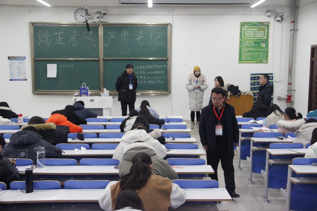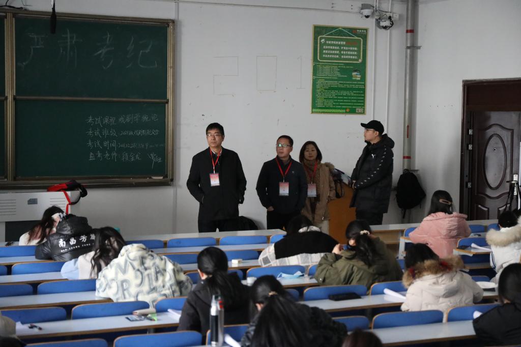 12月25日,必赢国际官网2021—2022学年第一学期期末考试开考。吕东亮院长、胡波书记等学院领导在教学办陪同下,深入考试现场检查指导期末考试组织工作。