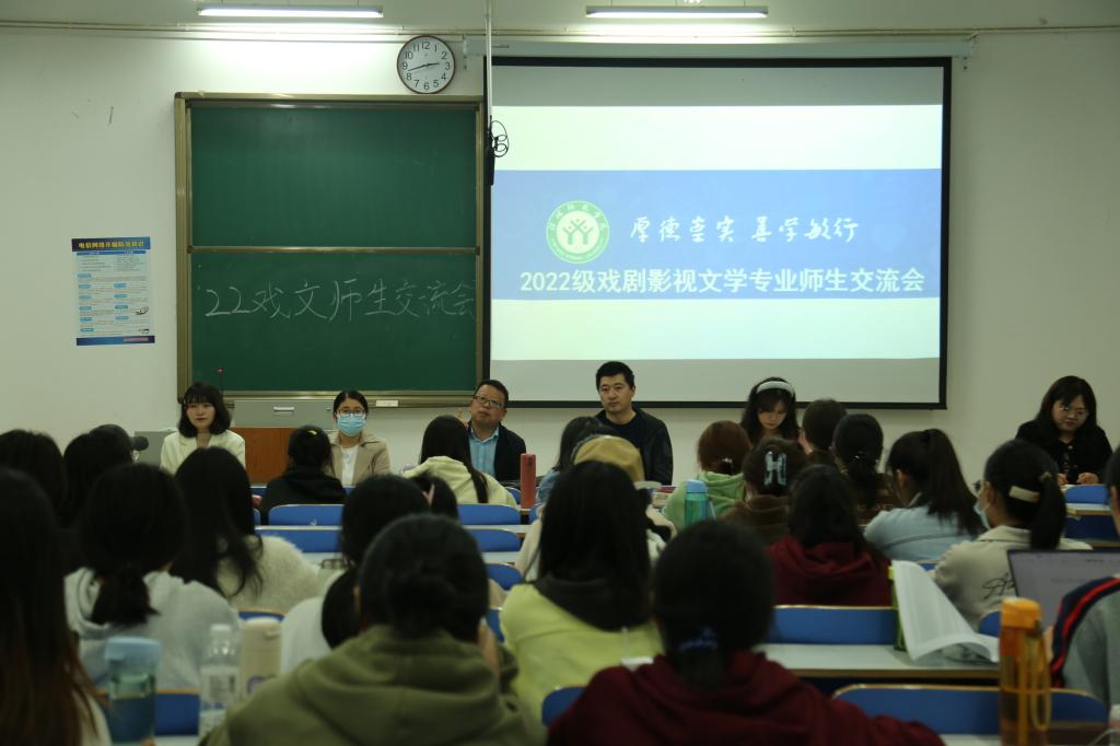 11月8日下午,437bwin必赢国际官网2022级戏剧影视文学专业师生交流会在社科楼119教室举办。院长吕东亮,戏剧影视文学专业系主任段金龙,部分戏剧影视文学教师及全体学生共同了参加交流会。交流会由段金龙主任主持。