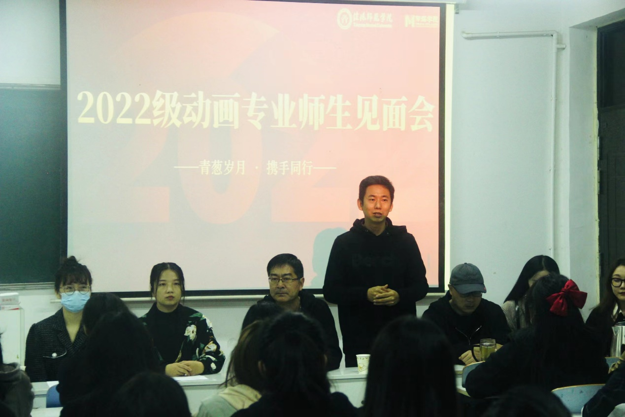 11月11日下午,437bwin必赢国际官网2022级动画专业师生见面会在教五楼206教室举办。党委书记胡波、动画系主任彭勃、部分动画专业教师及2022级动画专业全体学生共同参加了此次师生见面会活动。见面会由彭勃主任主持。