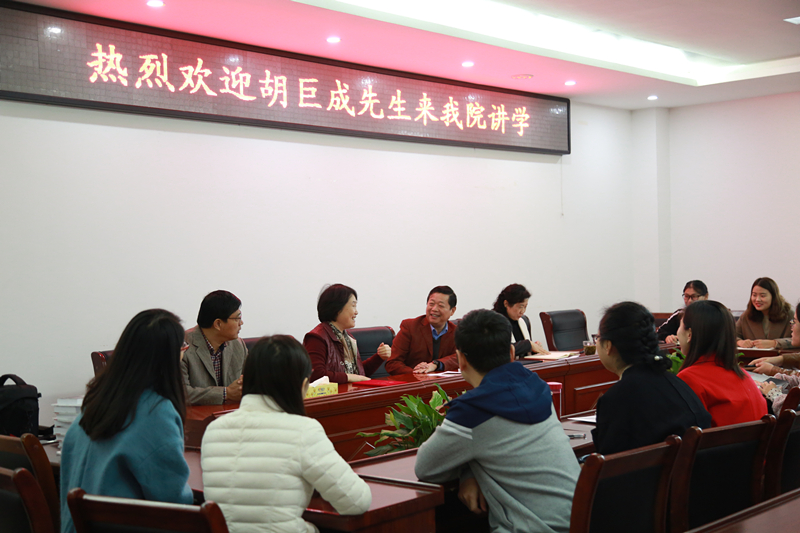 10月17日上午,在社科楼311会议室,河南日报报业集团驻信阳记者站站长胡巨成受聘必赢国际官网硕士研究生导师,并作题为“人物访谈与新闻采写”的学术报告。院长焦素娥,副院长刘想如、刘新建,教师代表及2017级广播电视专业研究生参加了报告会。