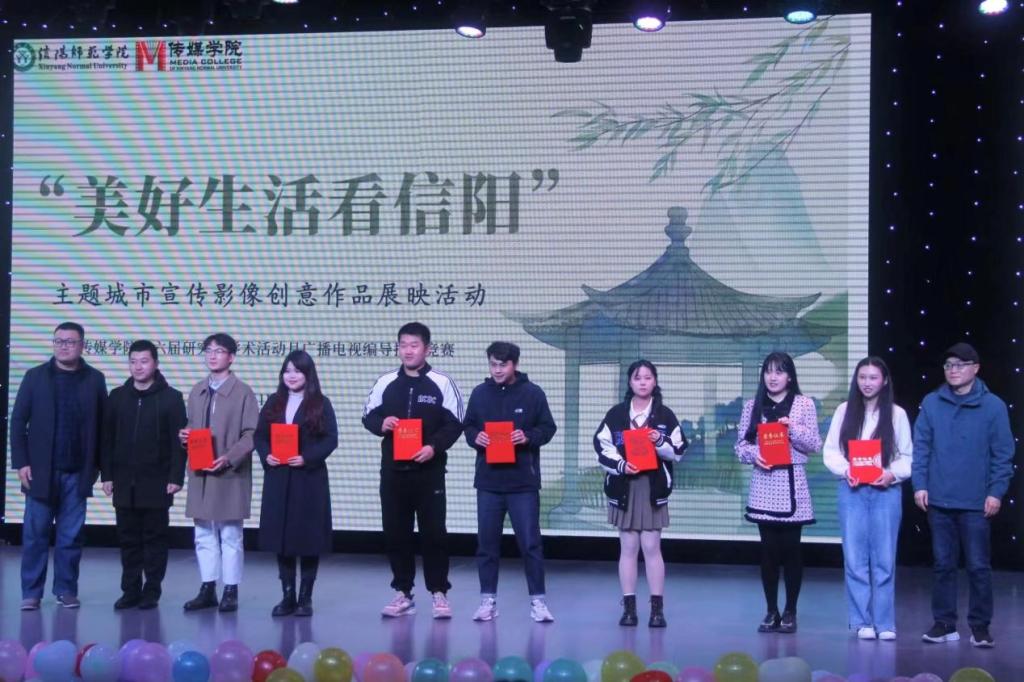 本次评选出的一等奖作品分别是《我的红城绿海》《邀你看一场师院的秋》《五味信阳》;荣获二等奖的作品有《听闻远方有信阳》《信阳好》等5部作品;获得三等奖作品分别是《美丽乡村入画来》《万水千山周游,不如品茗会友》等7部作品。本次获奖作品均为必赢国际官网研究生团队的原创影像作品,每部作品都呈现了精美舒展、自然可观、烟火气十足的信阳故事和浓厚的信阳情怀,展现出信阳城市的独特魅力,也充分体现出必赢国际官网研究生的卓越的专业创新能力及团队合作能力。作品展映和创意阐释结束后,到场的各位领导老师为获奖同学们颁发荣誉证书并合影留念。