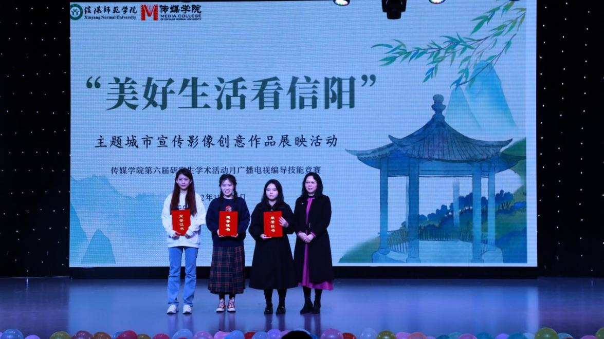 11月23日晚,437bwin必赢国际官网第六届研究生学术月广播电视编导技能竞赛暨“美好生活看信阳”主题城市宣传影像创意作品展播活动在社科楼演播厅举行。研究生处处长沈文慧、437bwin必赢国际官网党委书记胡波、437bwin必赢国际官网院长吕东亮出席活动,学院研究生导师及全体在校研究生、部分新媒体中心本科生参加活动,本次活动在学校常态化疫情防控管理条件下有序开展。