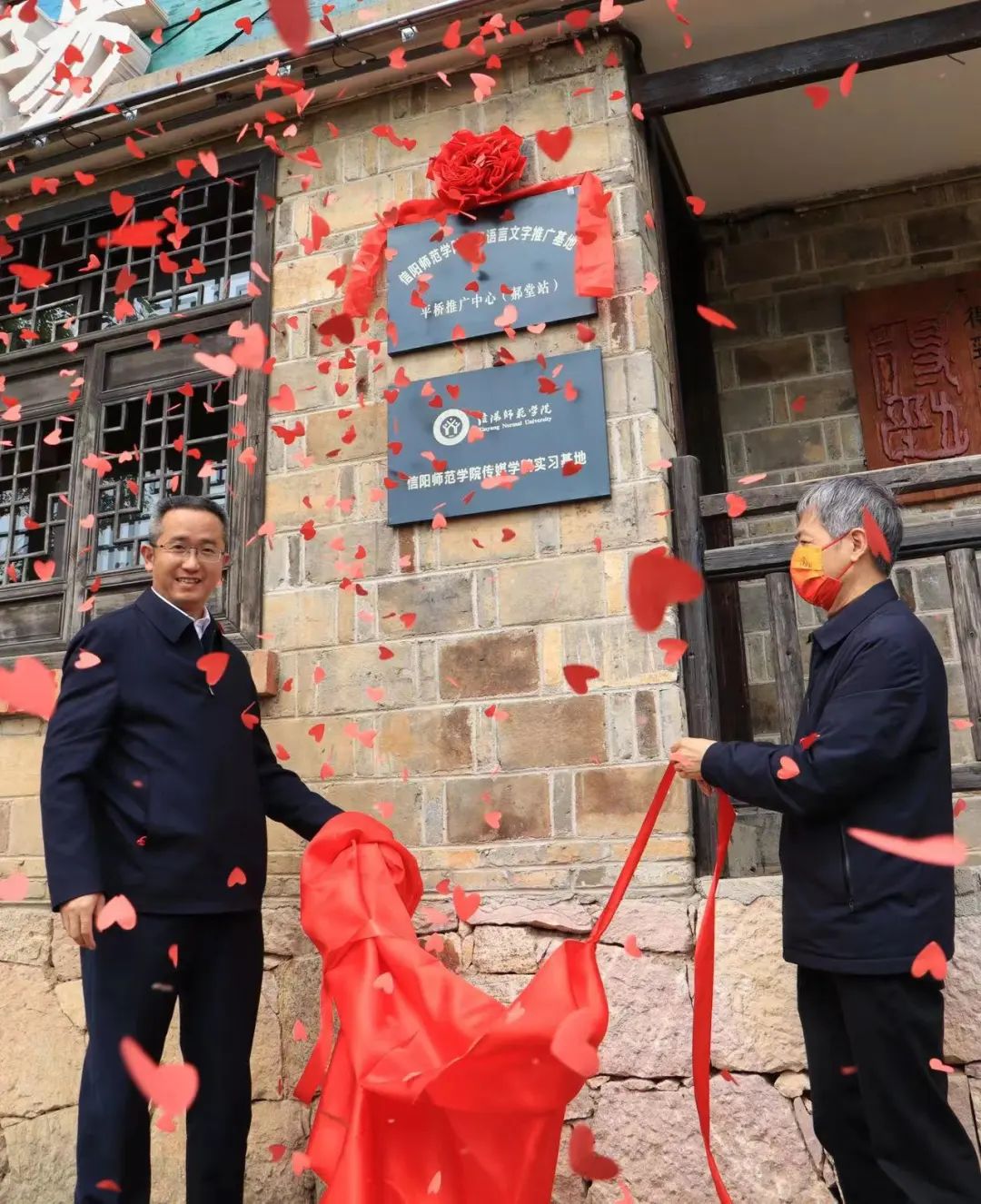 为助力乡村文化振兴,积极构建高校和地方密切联系的纽带和桥梁,4月16日,我校国家语言文字推广基地平桥推广中心(郝堂站)、信阳师范学院437bwin必赢国际官网大学生就业实践基地揭牌仪式在平桥区郝堂村举行。校长李俊,平桥区区长董立淳与平桥区相关单位,我校校长办公室、招生就业处、437bwin必赢国际官网等单位负责同志参加揭牌仪式。仪式由平桥区委常委、宣传部长、副区长霍昱廷主持。共同开启平桥区与信阳师范学院校地合作的崭新篇章。