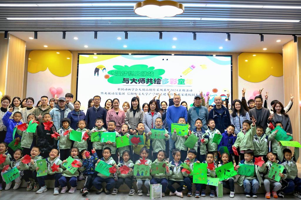 11月17日-18日,我校开展“动漫梦想启航站 与大师共绘多彩童年”艺术家进校园专题活动,并与央视动漫集团举行动漫创作产学研共建基地更新揭牌仪式。校长李俊出席揭牌仪式,央视动漫集团创作二部主任刘峰宇、制作总监胡福雄、美术设计顾逸鸣,河南网络视听协会会长李波,信阳广播电视台党组成员、副总编王天华,信阳市文化馆馆长、一级美术师许煦,副校长王娟、江玉安出席艺术家进校园专题活动,437bwin必赢国际官网、附属幼儿园师生代表参加活动。
