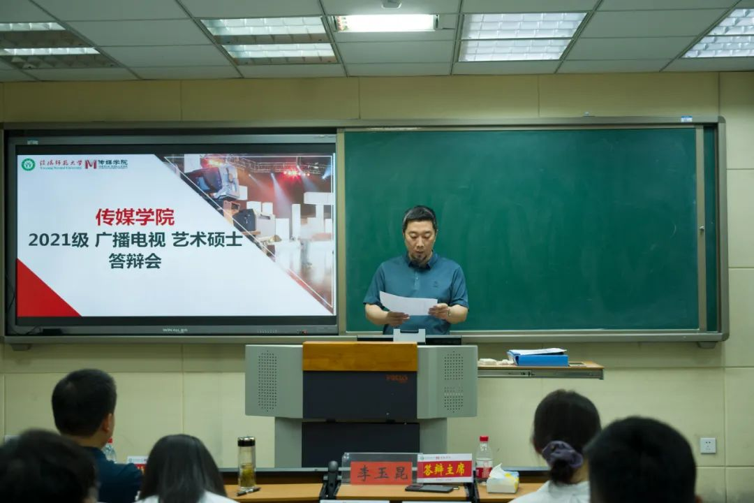 5月17日下午,437bwin必赢国际官网2021级广播电视艺术硕士答辩会在社科楼311会议室和教五楼301教室同步进行。河南大学戏剧影视文学系主任李玉昆教授、武汉大学艺术学院王杰泓教授受邀担任答辩委员会主席,437bwin必赢国际官网院长吕东亮、副院长周强及部分硕士生导师共同担任答辩委员会委员。2021级研究生分两组进行答辩,2022级硕士研究生与会旁听。