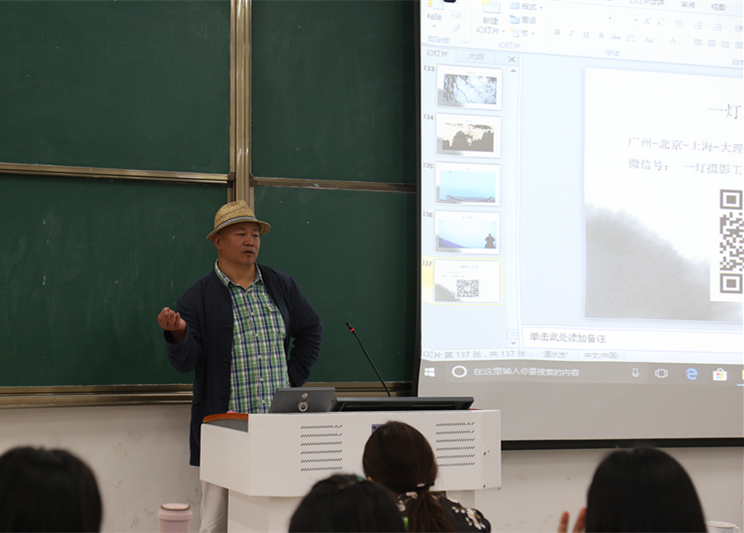 4月10日上午,摄影家赵卫民在社科楼324教室作了题为“新媒体环境下传媒人的职业素质与技能”的学术报告。院长焦素娥,院党委书记王振海,2016级师生约200人聆听了报告。