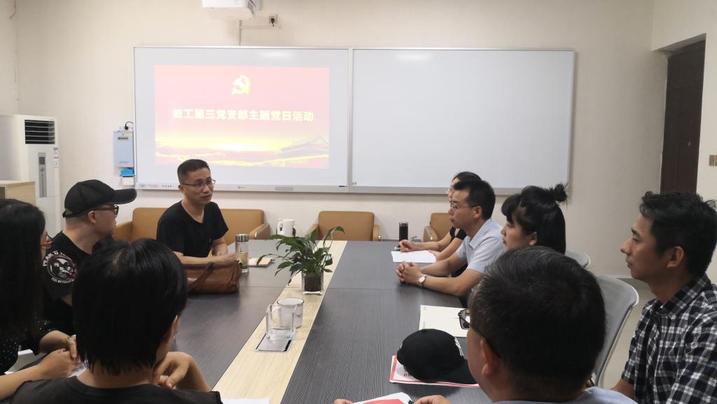 9月6日下午,437bwin必赢国际官网教工第三党支部在社科楼104室举行了以“聆听榜样故事 传递大爱情怀”为内容的主题党日活动。活动由党支部书记范少华同志主持,437bwin必赢国际官网党委书记王振海同志以普通党员身份参加了此次支部活动,动画系入党积极分子来到现场观摩学习。