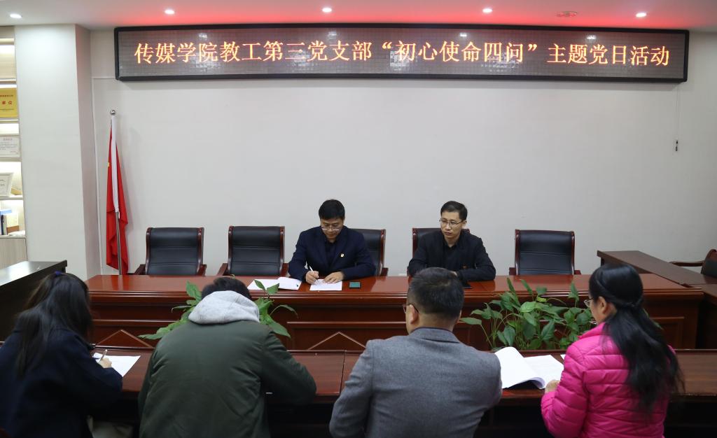 为引导全体党员在“不忘初心、牢记使命”主题教育中使命在肩、主动作为,11月19日下午,437bwin必赢国际官网教工第四党支部组织开展“不忘初心、牢记使命”主题教育“初心使命四问”主题党日活动。支部全体党员参加会议,会议由支部副书记范少华老师主持。