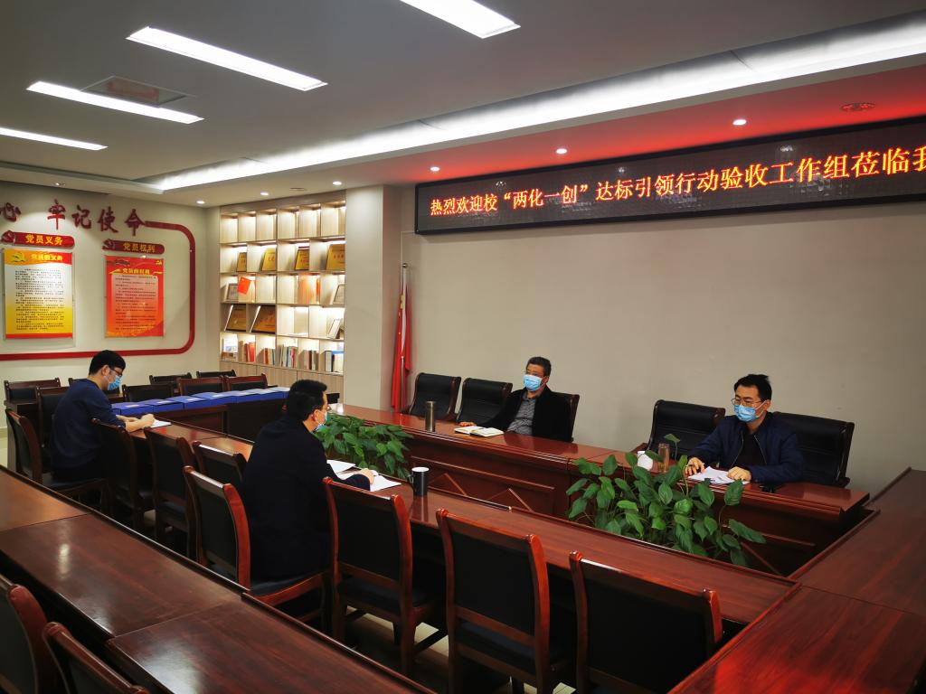 4月23日,校“两化一创”达标引领行动第三验收组组长、党委组织部副部长姜兴周和党委组织部刘丰铭一行来必赢国际官网检查指导党支部“两化一创”达标引领行动验收工作。