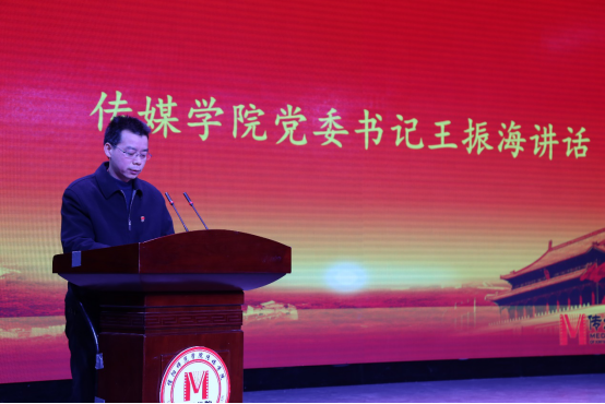 1月5日下午,437bwin必赢国际官网在社科楼演播厅举行2020年下半年入党宣誓大会。437bwin必赢国际官网党委书记王振海、副院长刘新建、党委委员范少华及学生党支部书记、学生党员代表、2020年下半年新发展预备党员、入党积极分子参加大会。大会由刘建新主持。