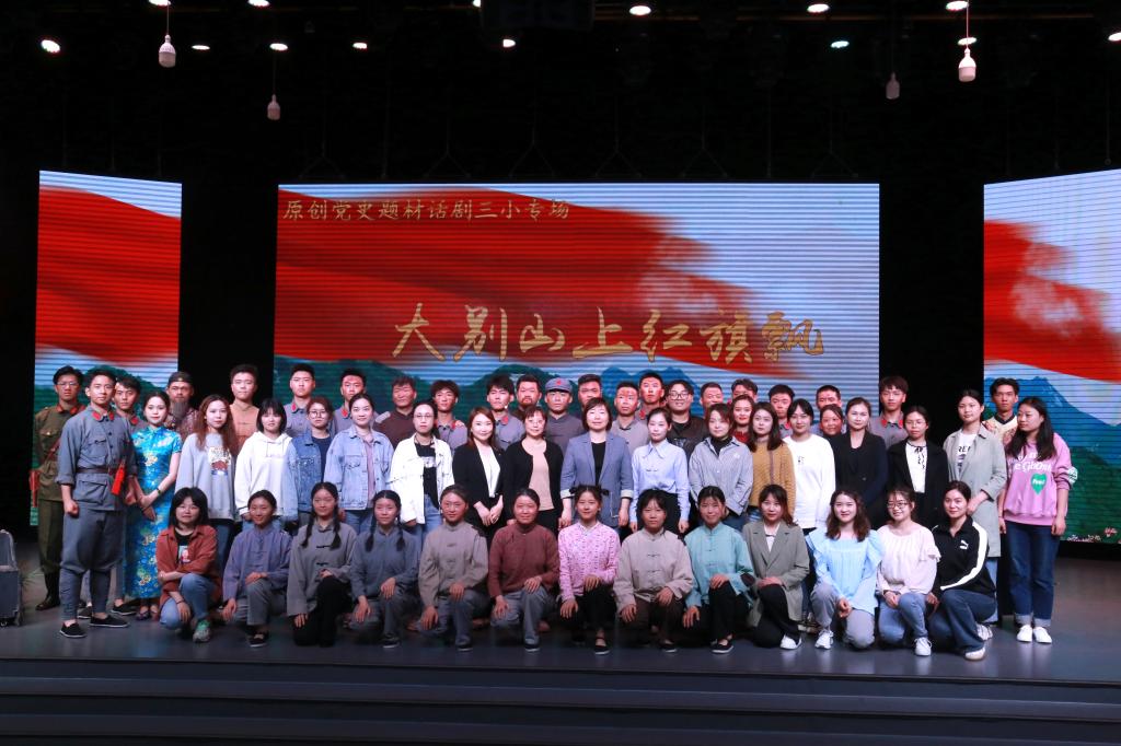近年来,437bwin必赢国际官网牢记习近平总书记考察河南深入信阳大别山革命老区时提出的“两个更好”嘱托,结合专业讲好“四个故事”,将艺术实践与党史教育结合起来,深挖大别山“红色富矿”,先后创作系列党史题材话剧《大别山上杜鹃红》《大别山上苍松翠》《大别山上桂花香》,用话剧这一高雅的艺术形式解读中国共产党精神谱系,用好用活大别山红色资源,让革命薪火代代传承。