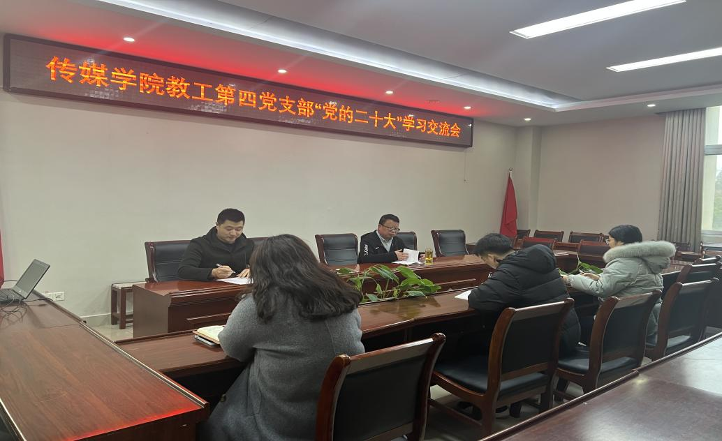 2022年11月15日下午,437bwin必赢国际官网教工第四党支部在社科楼311召开了“党的二十大”学习交流会。会议由教工第四党支部书记段金龙同志主持,支部全体党员参加。