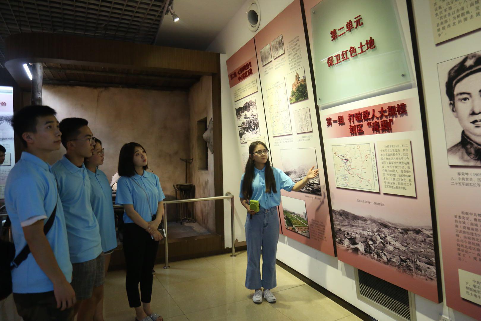 7月10日,437bwin必赢国际官网“三下乡”鄂豫皖小分队来到鄂豫皖革命纪念馆,接受革命传统教育,学习抗日战争时期的革命历史事迹,了解了这片红色土地上发生的英雄事迹。 鄂豫皖是中国革命的重要策源地、主要活动地和走向全面胜利的战略转折点。从这里走出了红四方面军、红二十五军、红二十八军等多支主力红军。这是红色的土地,将军的摇篮,从这里走出了董必武、李先念、王树声、徐海东、许世友等众多党和国家领导人,30多万英雄儿女为革命事业奉献生命,他们以身许国,留下了许多可歌可泣的感人事迹。团队成员参观墙壁上展出的历史事迹,谈到了解的历史以及熟悉的抗日英雄大家自发的讨论和思考,引发了深切的共鸣。