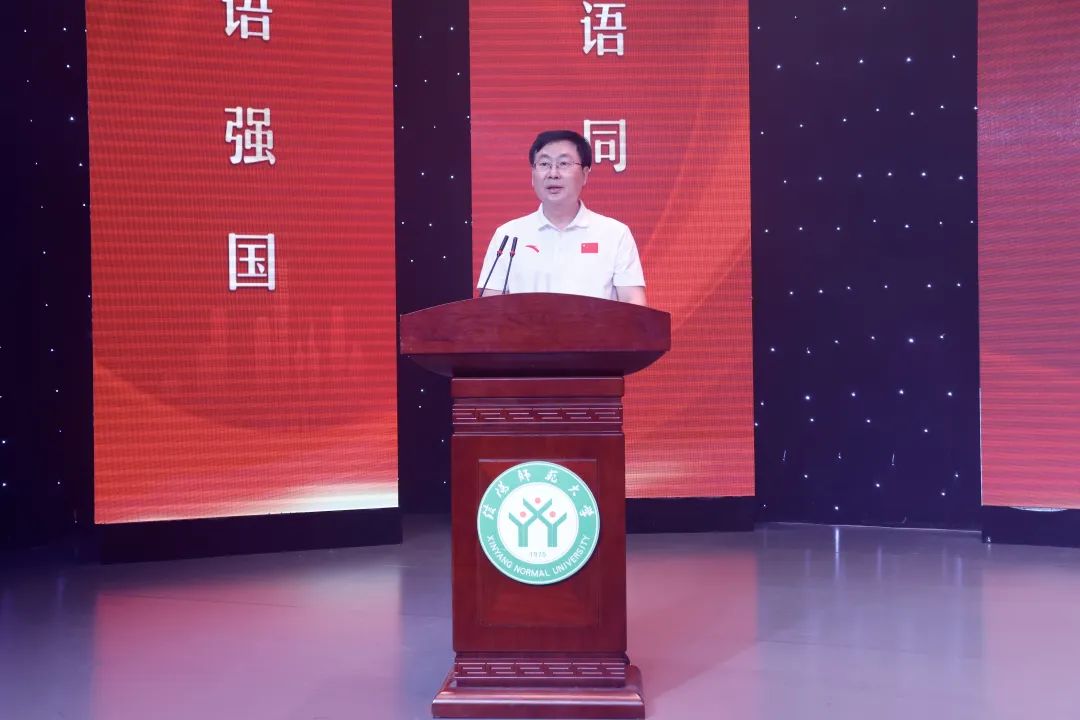 9月19日晚,由我校国家语言文字推广基地、信阳市教育体育局、信阳市民族宗教事务局联合举办的“华章颂祖国,奋进新时代”庆祝新中国成立75周年经典诵读会暨“诵读中国”走进小学多彩课堂系列活动启动仪式在社科楼演播厅举行。副校长王娟、信阳市教育体育局副局长高君行,信阳市民族宗教事务局以及我校语委办、437bwin必赢国际官网等单位相关负责同志共同出席本次活动。