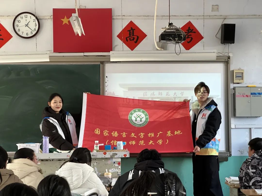 今年寒假,必赢国际437官方437bwin必赢国际官网“声声不息”推普志愿服务团先后前往周口市沈丘一高、淮阳中学与登封市实验高中,开展以“声动校园·语润青春”为主题的推普实践活动。活动以创新形式、多元载体和沉浸式体验为特色,为三校师生带去别开生面的语言文化课堂。