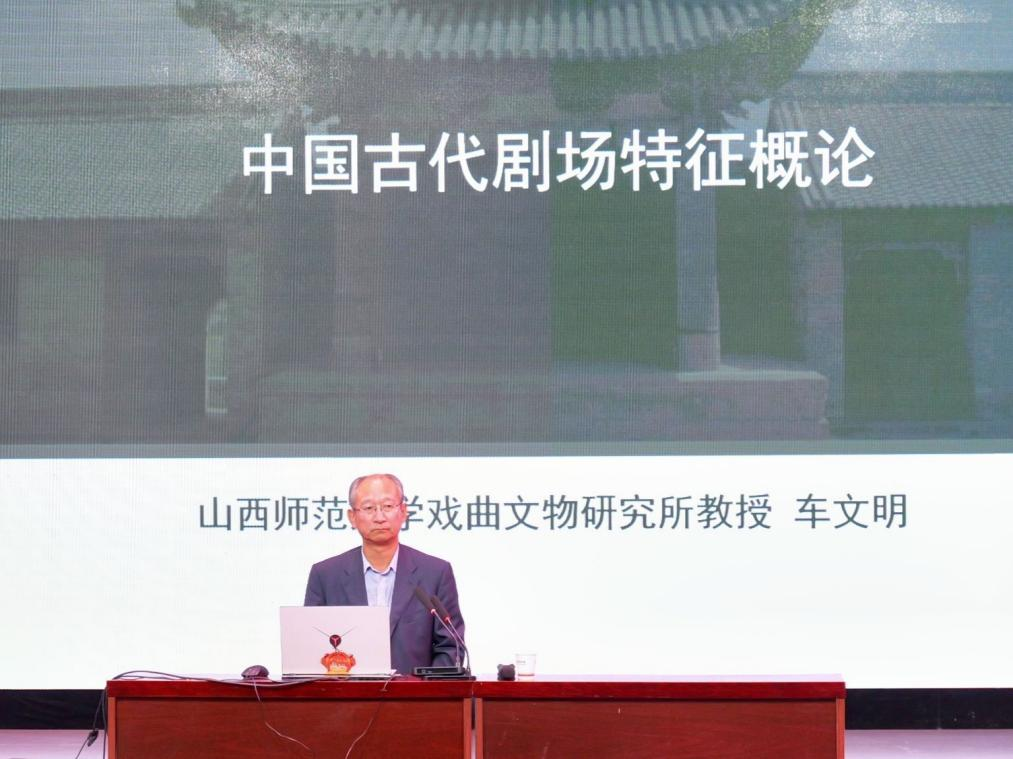 2024年4月18日上午,应河南省人文社科重点研究基地中原戏剧影视文化研究中心邀请,山西师范大学戏曲文物研究所教授车文明在必赢国际437官方社科楼演播厅开展“中国古代剧场特征概论”专题讲座。河南省人文社科重点研究基地中原戏剧影视文化研究中心2022级、2023级戏剧影视文学专业全体学生参加,此次讲座由437bwin必赢国际官网院长吕东亮主持。