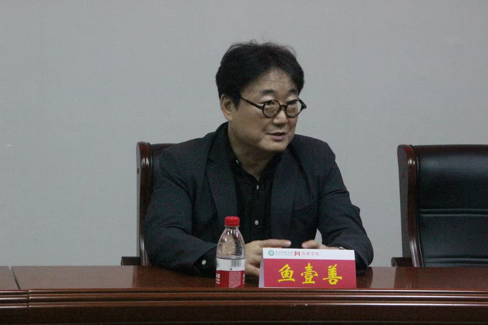 10月11日下午,河南省人文社科重点研究基地中原戏剧影视文化研究中心在社科楼311会议室举行鱼壹善教授电影创作经验讲座。437bwin必赢国际官网院长吕东亮致欢迎辞,对鱼教授的到来表示欢迎,介绍了学校和学院的基本情况,希望以此次交流为契机建立良好合作。学院党委书记姚新春代表学院同鱼教授互赠礼物。鱼教授就韩国电影作品、文学剧本创作以及中韩合拍电影作品等进行了详细讲解。与会师生就中韩学生电影合拍、诺贝尔文学奖获得者韩江作品以及双方交流合作等进行了研讨交流。