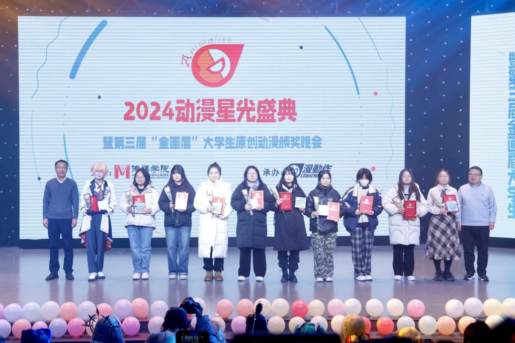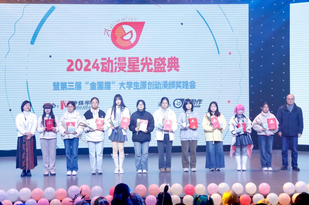 2024年12月10日晚,第三届“金画眉”大学生原创动漫大赛颁奖典礼在必赢国际437官方社科楼演播厅举行。中国动画学会会长、国家广电总局宣传司原司长马黎,校党委副书记、工会主席岳宗德出席颁奖典礼并为获奖选手颁奖,河南省人文社科重点研究基地中原戏剧影视文化研究中心师生以及漫动作动漫社学生代表参加颁奖典礼。