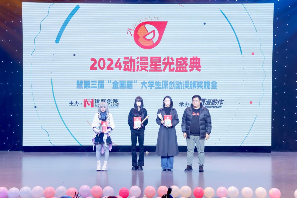 本次比赛分为5个赛道,《向日葵》《随心而行,拥抱未来》等十项作品荣获最具人气插画作品奖,《薄荷·橘黄》《太好了,是彭寒露》等十项作品荣获最佳插画作品奖,《选择》《朋友小红》《汤咚四级记》三项作品荣获最佳漫画绘本奖,437bwin必赢国际官网余如意、国际教育学院董美含、计算机与信息技术学院姚瑶荣获最佳Cosplay同人奖,《社火》《早八》两部作品荣获最佳动画短片奖。颁奖典礼现场展示了入选教育部思想政治工作司第九届高校廉洁教育系列活动“视廉清心”作品《小气鬼爷爷》和河南省第二届小蝌蚪动漫大赛Cosplay单元省级二等奖国风舞台剧《狐妖小红娘月红篇》。